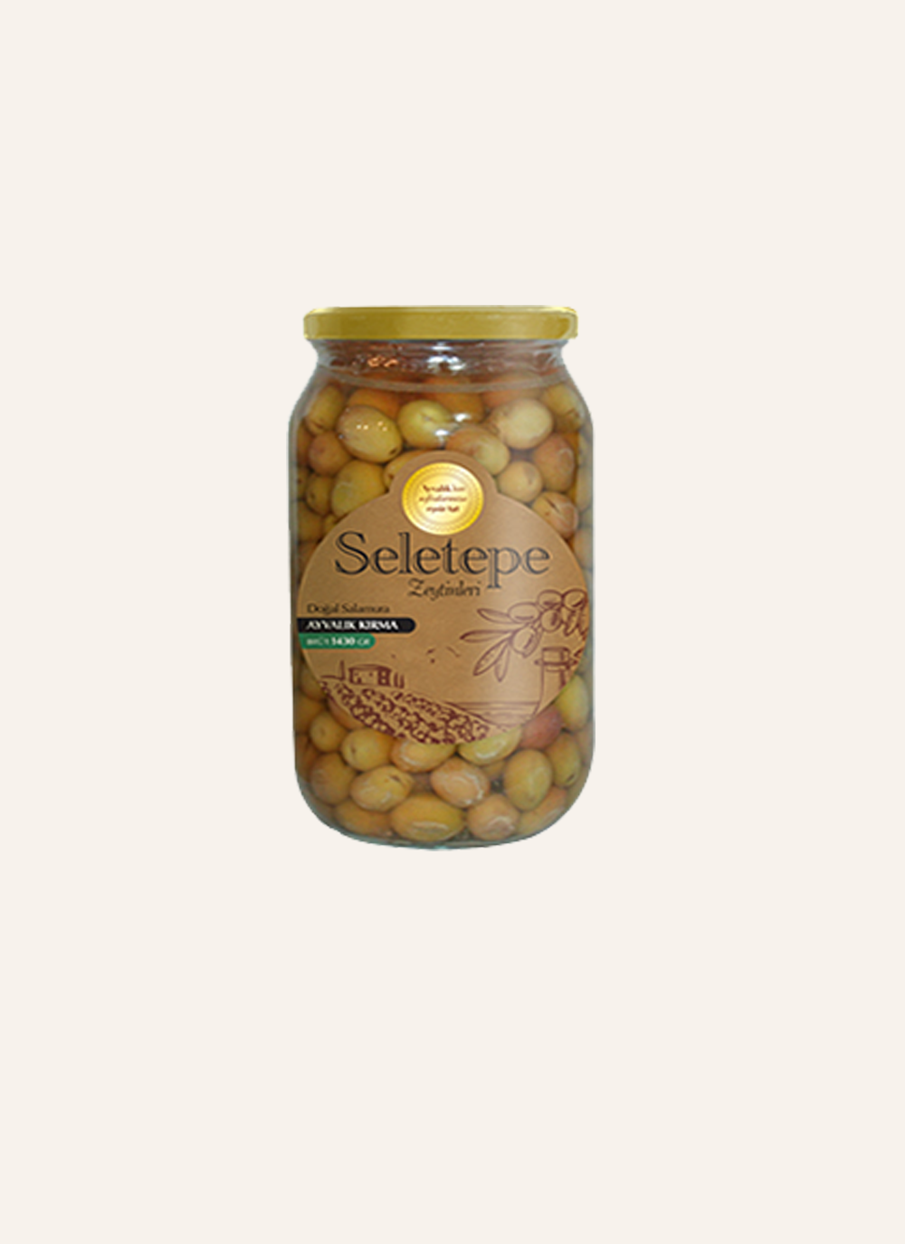Doğal yöntemlerle hazırlanmış Ayvalık Kırma Yeşil Zeytinimiz, taptaze Ayvalık zeytinlerinin en olgun ve iri tanelerinin özenle seçilmesiyle üretilmiştir. Her bir zeytin,  kırılarak salamura edilir; böylece kendine özgü aroması ve hafif ekşimsi, ferah tadı sofralarınıza taşınır.